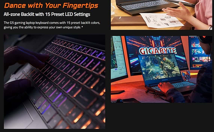 - Gigabyte g5 kc 51s11130sh với kích thước màn hình khủng 15.6 inch, cùng cấu hình mạnh mẽ và thiết kế tinh tế chắc chắn, kết hợp cùng với hệ thống tản nhiệt khủng giúp máy luôn mát mẻ khi sử dụng chơi game hoặc làm việc công suất cao, thì chắc chắn khi chọn G5 sẽ không làm những bạn game thủ thất vọng.
