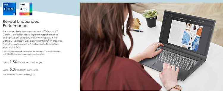 - Là một sản phẩm đến từ MSI một thương hiệu máy tính rất nổi tiếng nên chúng ta hoàn toàn có thể yên tâm khi chọn MSI Modern 15 A5M 238VN. So với phiên bản tiền nhiệm trước với có cấu hình mạnh mẽ hơn nhiều.