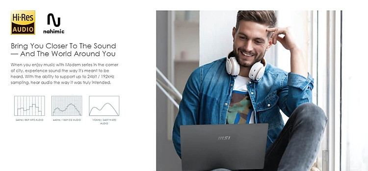 - Hướng đến những người hiện đại, có nhu cầu văn phòng hiệu suất cao, msi modern 15 cũng đi kèm đủ loại kết nối để phục vụ công việc của người dùng một cách tốt nhất với các cổng kết nối 1 cổng HDMI, 1 cổng USB Type-C (Thunderbolt 4 / Display Port / USB 4.0), 2 cổng USB 3.1, Jack Audio, MicroSD Reader, Hi-Res Audio with Nahimic 3, MIL-STD-810G (chuẩn quân đội).